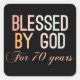 Colourful 70th birthday design in decorative ornamental style. Funny sarcastic 70 years old saying quote with phase Blessed by God for 70 Years. Perfect Happy Birthday Gift idea for Dad, mum, friend, grandma, grandpa, uncle and aunt.