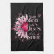 Blessed By God - Loved By Jesus Pink Sunflower Tea Towel