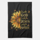 Blessed By God - Loved By Jesus, Sunflower Tea Towel