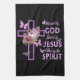 Blessed by God Saved by Jesus Purple Floral Cross Tea Towel