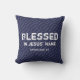 BLESSED IN JESUS' NAME Christian Scripture Blue Cushion