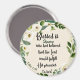 Blessed Is She Who Believed That God Would Fulfill His Promises To Her in black script, surrounded with a geometrical frame and green and white floral wreath. This quote is based on the Bible verse from Luke 1:45. Add a name to this gift to make it extra special! You can change the background color to another one by clicking through the customize button. Check out our shop for more designs by clicking the Scriptural Grace button above.