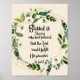 Blessed Is She Who Believed That God Would Fulfil His Promises To Her in black script, surrounded with a geometrical frame and green and white floral wreath. This quote is based on the Bible verse from Luke 1:45. Add a name to this gift to make it extra special! You can change the background colour to another one by clicking through the customise button. Check out our shop for more designs by clicking the Scriptural Grace button above.
