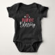 This adorable baby bodysuit is part of a matching set. The adult shirt says "Blessed Mama" and the baby shirt says "Mama's Blessing." The text is in pink and white and there are cute hearts surrounding the words. Find the adult matching shirt in the collection or at https://www.zazzle.com/blessed_mama_matching_parent_kid_mom_t_shirt-256263256210530375. This design also works as a toddler or kid shirt.