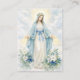 Remember your loved ones in prayer with this beautiful personalized traditional Catholic religious memorial holy card of the Blessed Mother Mary (Our Lady of Grace) with blue floral design.