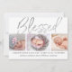 "Blessed" Silver Foil 3 Photo Birth Announcement