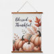 Bring the spirit of fall into your home with this customizable tapestry featuring soft watercolor pumpkins and the heartfelt message “blessed. thankful.”