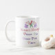 From of this design features beautiful calligraphy style typography design with the message, "Blessed to be a Nonna" in pink and purple type with watercolor floral accent on top and bottom. Back has title, "Nonna's blessings" with space below for your grandchildren's name's. Each name features a watercolor heart accent (can be removed or edited).