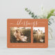 Simple and modern Christmas photo card with the text blessings in elegant handwritten script calligraphy on a burnt orange background. The back of the card has a rustic drawn sprigs pattern. Simply add your name and 2 favourite family photos to this festive Christmas card and send it to your family and friends! Exclusively designed for you by Happy Dolphin Studio.