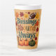 Celebrate the warmth of fall with this cheerful "Blessings Abound Always" design, bursting with cosy seasonal vibes. Surrounded by vivid autumn leaves in shades of crimson, gold, and burnt orange, this playful composition features plaid-patterned typography that radiates rustic charm. The inclusion of pumpkins, a classic football, and a whipped cream-topped fall drink adds a nostalgic and festive touch, perfect for anyone who loves crisp afternoons and pumpkin spice everything. The rich colours and joyful theme make this design ideal for autumn gatherings, Thanksgiving, or simply to embrace the spirit of gratitude. Styled with a modern country flair and playful visual layering, this artwork captures the essence of the fall season in a fun, heartwarming way. AI generated artwork.
