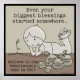 Little Boy intently gazes at a sprouting plant realising that “even your biggest blessings started somewhere”. Seed packets and bags of seed with inspirational words on them sit off to the side. Christie Black illustrates the brilliant quote of motivational speaker, David A. Carrizales.