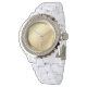 Exuding timeless elegance and understated luxury, the Gold Wrist Watch is a true embodiment of classic sophistication. Its gleaming white exterior paired with a matching gold face and gemstones, offers a simplistic yet striking design that never goes out of style. This watch is the epitome of refinement, making it the perfect accessory for those who appreciate the beauty of simplicity. With its classic charm and exquisite craftsmanship, it's a statement of enduring style that transcends generations.