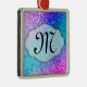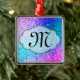 Bling Glitter Girly Pink Purple Teal Aqua Blue Glitz Glamour Monogram Initial Christmas Ornament Personalised