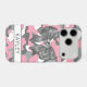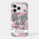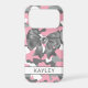 Customize this pink, gray and white camouflage iPhone 17 pro case with a gray satin bow with a diamond center and your name in a trendy modern CAP font in dark gray on white. It's so blingy, girly and chic! Perfect for any country girl!