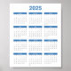 Bliue and White 2025 Year At A Glance Calendar Poster