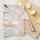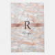 Blk Name/Monogram White/Rose Gold Marble Glitter 2 Tea Towel