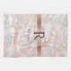 Personalise black script name and large black monogram on rose gold band over white and rose gold marble with glitter. Version 2.
