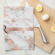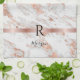 Blk Name/Monogram White+Rose Gold Marble Glitter 2 Tea Towel
