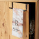 Personalise black script name and large black monogram on rose gold band over white and rose gold marble with glitter. Version 2.