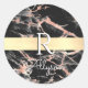 Blk & Rose Gold Marble Gold Bar, Wht Name Monogram Classic Round Sticker