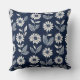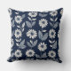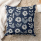 Block print boho floral blue and white cushion