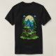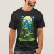 Step into the world of blocks and adventure with this bold Minecraft-inspired T-shirt design. Featuring a fearless character holding a diamond sword on a grassy cliff, a lurking Creeper, glowing torches, and a pixelated moon in the sky, this design captures the thrill of exploration and survival.