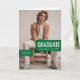 Stylish graduation announcement card and party invitation features a single oversized photo with "GRADUATE" as a large focal point. Personalise the modern custom text with your grad's name, school, and class year. This folded card design includes graduation party invitation wording inside along with a full picture. Customise the colours of the boxes on the front and text to match your school colours or coordinate with the photography. Available in school colours of red, orange, purple, green, blue, burnt orange, maroon, gold, and black. Matching products available.