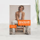 Stylish graduation announcement card and party invitation features a single oversized photo with "GRADUATE" as a large focal point. Personalise the modern custom text with your grad's name, school, and class year. This folded card design includes graduation party invitation wording inside along with a full picture. Customise the colours of the boxes on the front and text to match your school colours or coordinate with the photography. Available in school colours of red, orange, purple, green, blue, burnt orange, maroon, gold, and black. Matching products available.