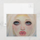 My acrylic art painting of a fluffy haired blonde angel, she has big blue grey eyes, and a pouty mouth.