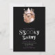 The text on the invitation alternates between stark white and light purple, creating a striking contrast that enhances readability while maintaining the eerie ambiance. The phrase "spooky party" is presented in a distinctive horror movie cut-from-magazines letter font, often referred to as ransom note or poison pen style. This unique font choice adds an extra layer of creepiness and horror, setting the perfect tone for your thrilling Halloween event.