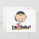 Baseball 5th Birthday t-shirts, mugs, magnets, cards, stickers, tote bags, and more featuring a blonde boy baseball player with blue cap, baseball, bat, and text that reads "I'm 5 Today!".
