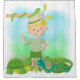 A cute shower curtain for boys who love reptiles and safari hikes! Features a blonde haired boy with safari hat, a snake wrapped around a tree branch, a polka dotted snake, lizard, and turtle!