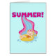 A cute design for summer, features a blonde haired girl in bathing suit and ring coming down the water slide and hot pink and blue text that reads SUMMER! Summer T-shirts, bodysuits, bibs, mugs, cards, bags, stickers, keepsakes, pillows, and much more.