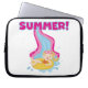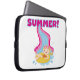 A cute design for summer, features a blonde haired girl in bathing suit and ring coming down the water slide and hot pink and blue text that reads SUMMER! Summer T-shirts, bodysuits, bibs, mugs, cards, bags, stickers, keepsakes, pillows, and much more.