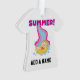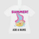 A cute design for summer, features a blonde haired girl in bathing suit and ring coming down the water slide and hot pink and blue text that reads SUMMER! Summer T-shirts, bodysuits, bibs, mugs, cards, bags, stickers, keepsakes, pillows, and much more.
