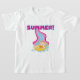 A cute design for summer, features a blonde haired girl in bathing suit and ring coming down the water slide and hot pink and blue text that reads SUMMER! Summer T-shirts, bodysuits, bibs, mugs, cards, bags, stickers, keepsakes, pillows, and much more.