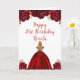 This birthday card features faux glitter red floral flowers and a beautiful princess with blonde hair and an elegant dress. This is perfect for a birthday party.