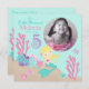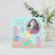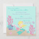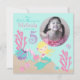 Little mermaid fifth birthday invitation card with underwater creatures.