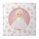 This design features a cute blonde haired Princess with pink gown, crown and gloves on a super cute pink dot background.
