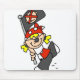 A blonde pirate boy with a flag, a cute pirate design for kids who love pirates!