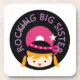 Blonde Rocking Big Sister T-shirts, tote bags, buttons, magnets, key chains, pillows, cards, stickers, and lots of other big sister items featuring a blonde haired girl in a skull cap and record album design with text that reads "Rocking Big Sister"!