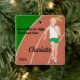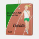 Blonde Track and Field Girl in Green and White Ceramic Ornament