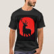 Deer under huge glowing blood-red moon – gothic cottagecore that screams on black tees.