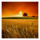 Wide angle view of a blood-red sunset over a golden wheat field. Generic background - no location