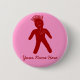 Blood red voodoo doll pin button with , "Your Name Here." Text and background colour can be customised.