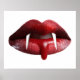 Featuring a pair of hot red lipstick lips with fangs and blood oozing from her vampire mouth!