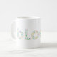 This mug features a clean botanical typography illustration of the word ‘BLOOM’, where each letter is filled with miniature plant-inspired shapes and organic details.