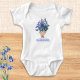 This cute baby bodysuit is adorned with a picture of English bluebells, wrapped in paper as a bouquet. Below the flowers is the inspirational caption 'Bloom like the bluebells' in elegant script typography. The pretty bodysuit makes a charming gift for a new baby.
