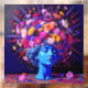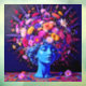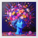 "Bloom of Eternity" – A Colourful Surreal Portrait. This piece fuses the permanence of sculpture with the fleeting vibrancy of flowers, creating a visual dialogue between stillness and growth. The serene blue figure appears timeless, yet crowned with an explosion of radiant blossoms that seem to pulse with life, symbolising rebirth, creativity, and the enduring cycles of beauty found in both nature and art.
