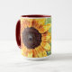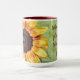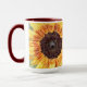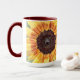 This custom 15-ounce coffee mug features an offset image of a sunflower bloom edited to create an interesting background of matching colours. To this, I added a healthy reminder from an old French proverb that reads, "Wherever life plants you, bloom with grace." The handle of the mug as well as the inside are glazed in maroon to match the design, and the mug is both dishwasher and microwave safe! Feel free to contact me through Zazzle if you have questions about this mug or would like help transferring this design to a different item. I'm happy to help to ensure the image and wording fit correctly.